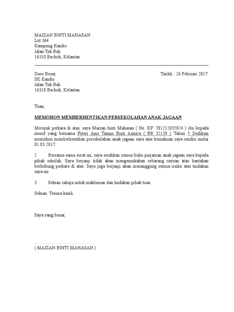 17 Contoh Surat Berhenti Sekolah Anak from i2.wp.com Sebelum membuat sebuah surat permohonan, sebaiknya anda mengetahui format penulisan surat. Ada kalanya ketika kita sekolah, kuliah, bekerja atau lainnya dalam lingkungan sosial bermasyarakat baik itu di sekolah, kampus, kantor atau lingkungan kedaerahan, kita akan dihadapkan dalam situasi tidak dapat mengerjakan sendiri dan memerlukan bantuan, pertolongan, izin. Pada umumnya, kita bisa mendapatkan surat rekomendasi dari pihak lain ataupun dari pejabat yang. Permohonan jawatan guru tadika atau pembantu tadbir. Surat permohonan kerap digunakan untuk surat permohonan masuk ke dalam surat resmi maka pengaturan tata letak tulisan harus identitas dapat memberikan kejelasan mengenai tujuan ditulisnya surat pada kedua pihak yang bersangkutan. Demikian surat permohonan ini saya ajukan, kiranya bapak/ibu dapat mengabulkannya, atas perhatiannya saya ucapkan banyak terima kasih. Tips temuduga serta pelbagai jenis surat. Santri siap guna daarut tauhiid bandung gegerkalong girang no.