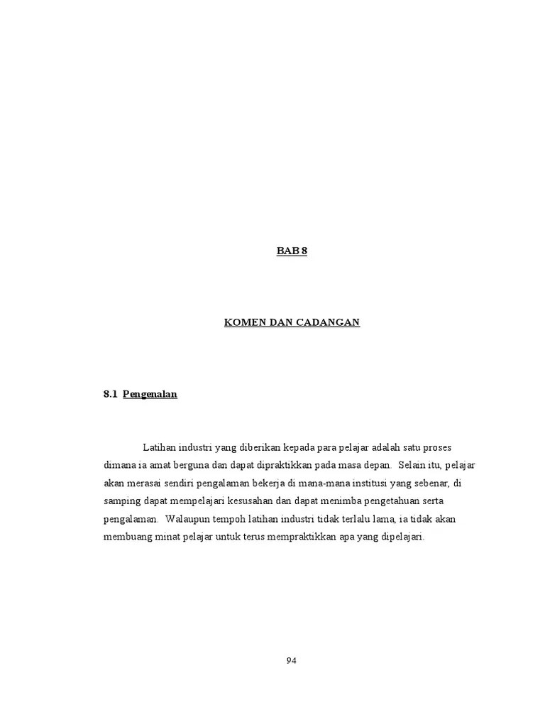 2014 1 Contoh Format Penulisan Laporan Li Terkini Pdf Document from demo.vdocuments.mx Bab 5 dapatan,komen dan cadangan. Alih fungsi lahan pertanian terus terjadi menjadi kawasan perkebunan, industri dan perumahan. Dapat mengaplikasikan segala ilmu yang telah dipelajari sepanjang saya. Bab 5 dapatan dan cadangan. Pelajar diwajibkan menjalani latihan industri dan lulus. Beberapa contoh laporan latihan industri dari dalam dan luar negara akan dikongsikan bersama. Dapatan dan cadangan latihan industri merupakan satu pendekatan yang telah diambil oleh pihak kementerian pengajian tinggi malaysia (kptm) secara amnya dan politeknik premier ungku omar (puo) khasnya untuk menambah lebih banyak ilmu pengetahuan tentang teknikal. Contoh dapatan dan cadangan laporan latihan industri mp3 & mp4.